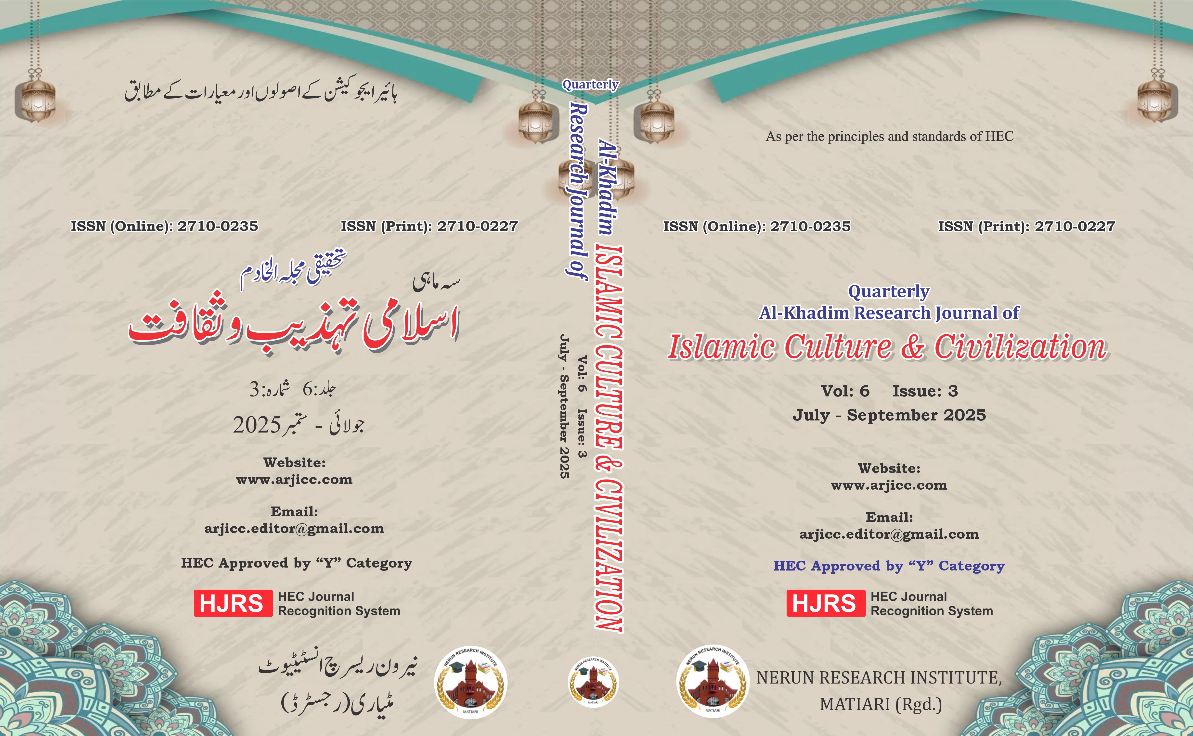 Al Khadim Research Journal of Islamic Culture and Civilization (July to September 2025)